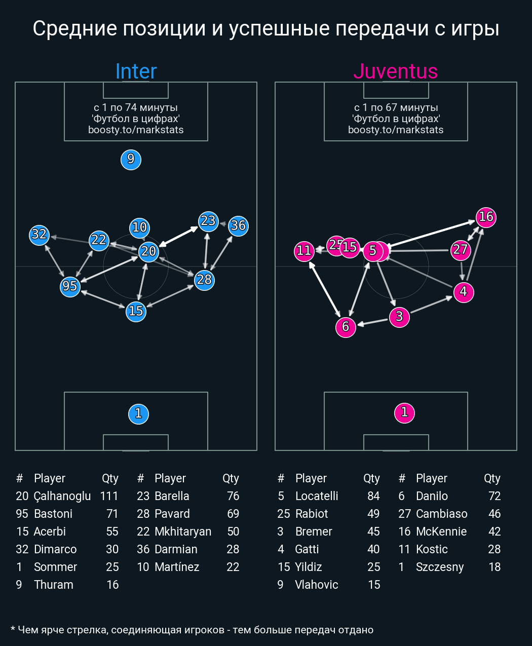 72 успешных передач из 78 попыток (7 с продвижением, 3 на трети соперника)