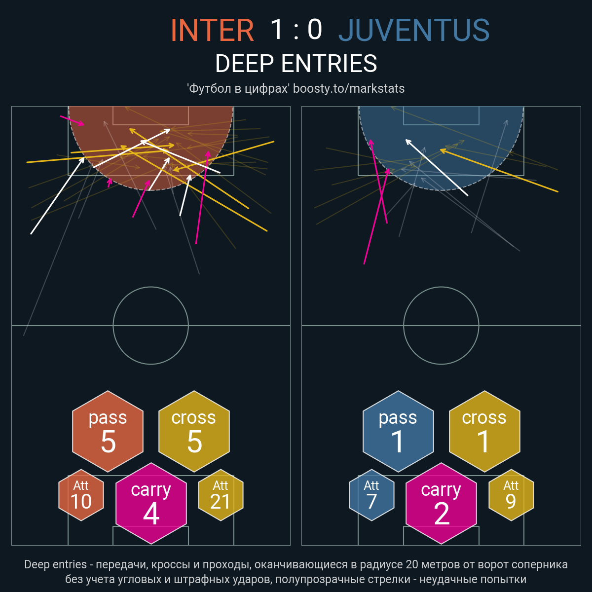Касания в штрафной: 42 - 21