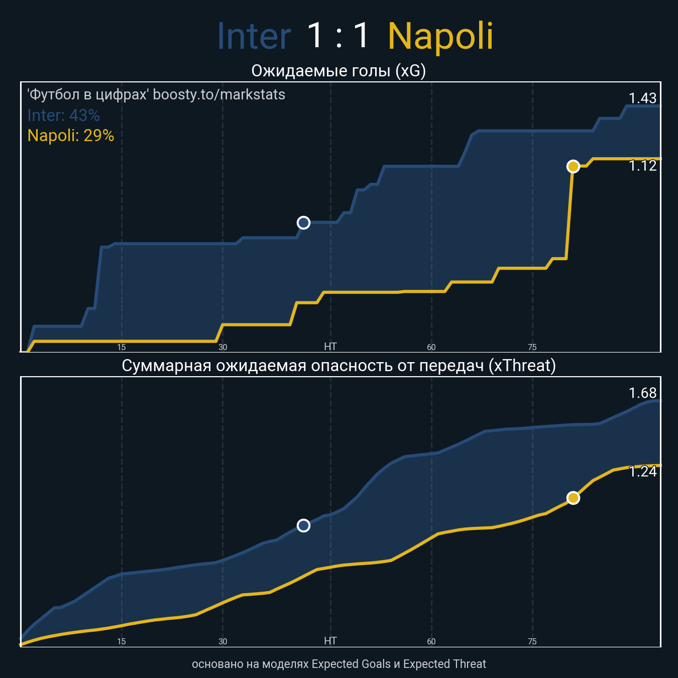 Ожидаемые голы (NPxG): 1.43 - 1.12