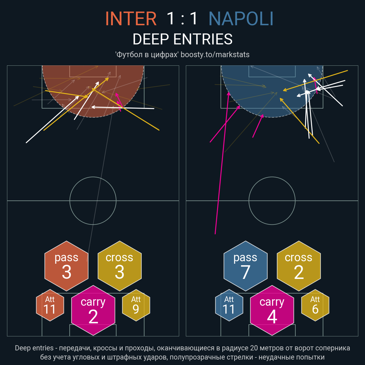 22 успешных передач из 26 попыток (2 под удар, 3 с продвижением, 5 на трети соперника)