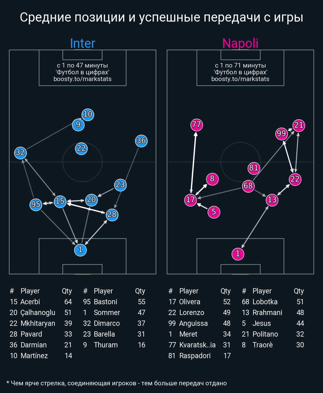 48 успешных передач из 54 попыток (3 под удар, 4 с продвижением, 7 на трети соперника)