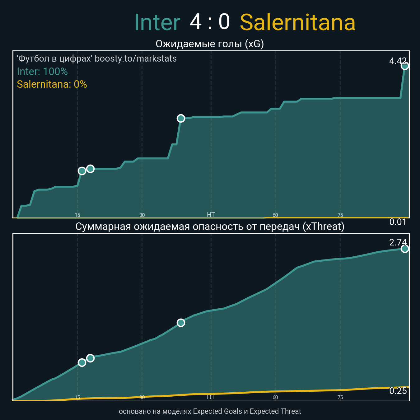 Ожидаемые голы (NPxG): 4.42 - 0.01