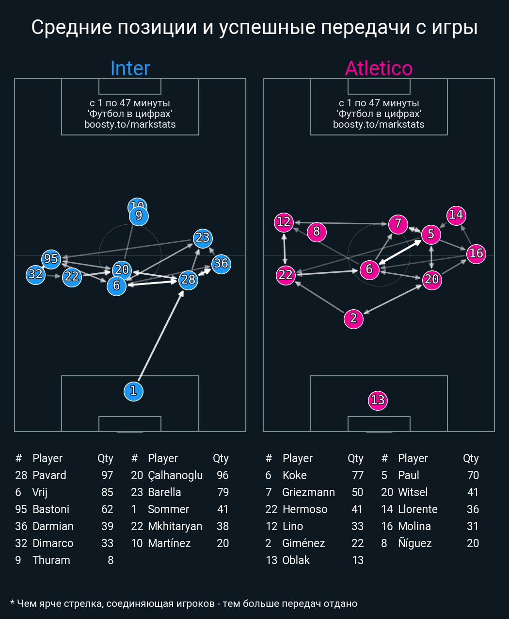 78 успешных передач из 85 попыток (2 с продвижением, )