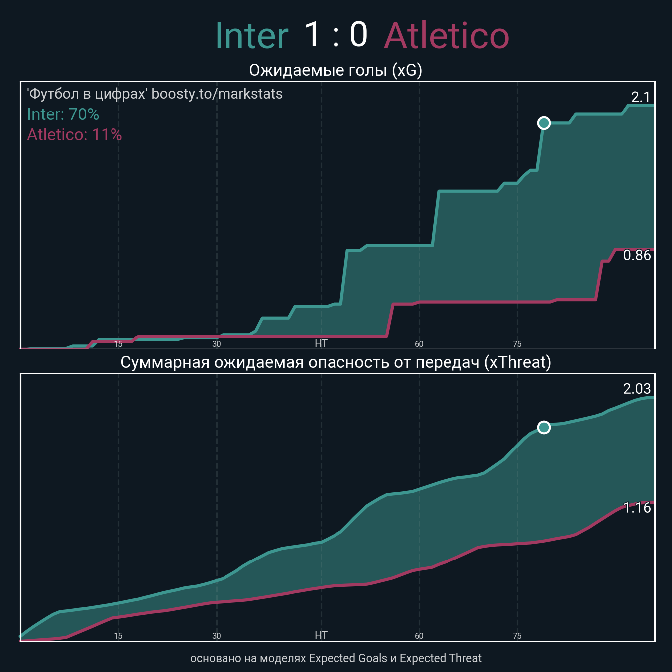 Ожидаемые голы (NPxG): 2.1 - 0.86