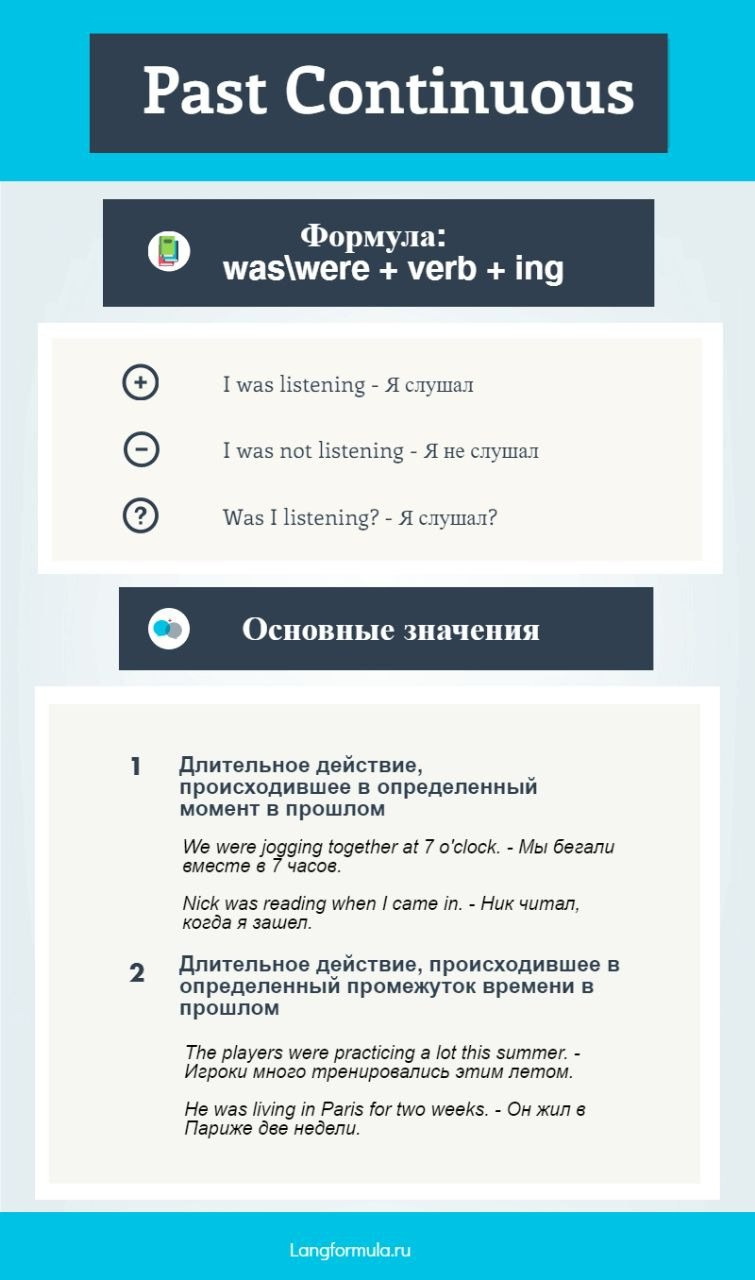 1. Past Continuous — прошедшее длительное время