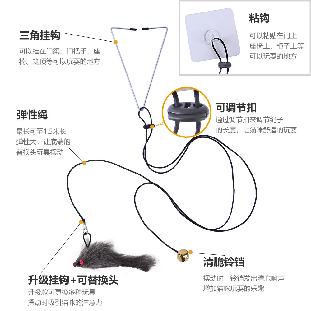 WROalEFZXUHere you can buy Interactive Cat Toy Hanging Door Retractable Cat Scratch Rope Mouse Long Stick Kitten Feather Toys for Indoor Cats Play Exercise with free delivery to your post office.