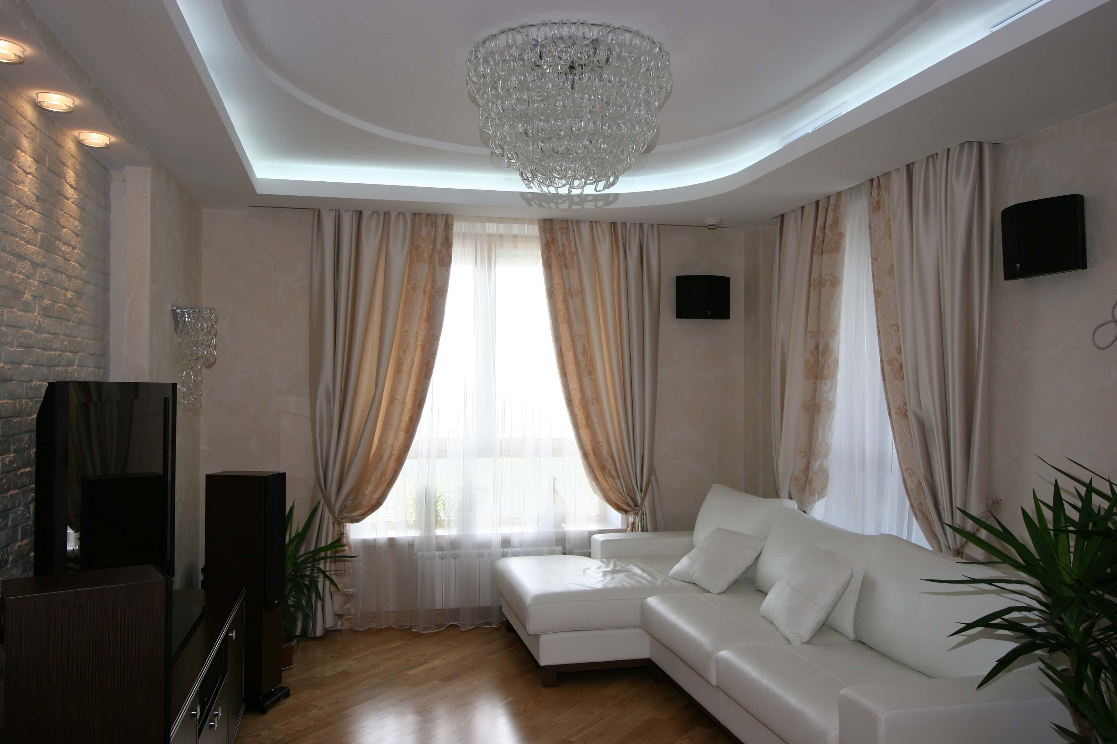Занавески в гостиную: 100 фото лучших идей в дизайне интерьера . Современные занавески в гостиную - короткие, белые, серые, коричневые . Как выбрать занавески для гостиной с двумя окнами, с балконом .