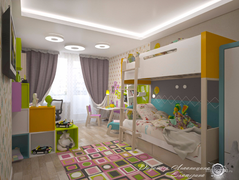 Интерьер детских комнат для разнополых 119 фотографий