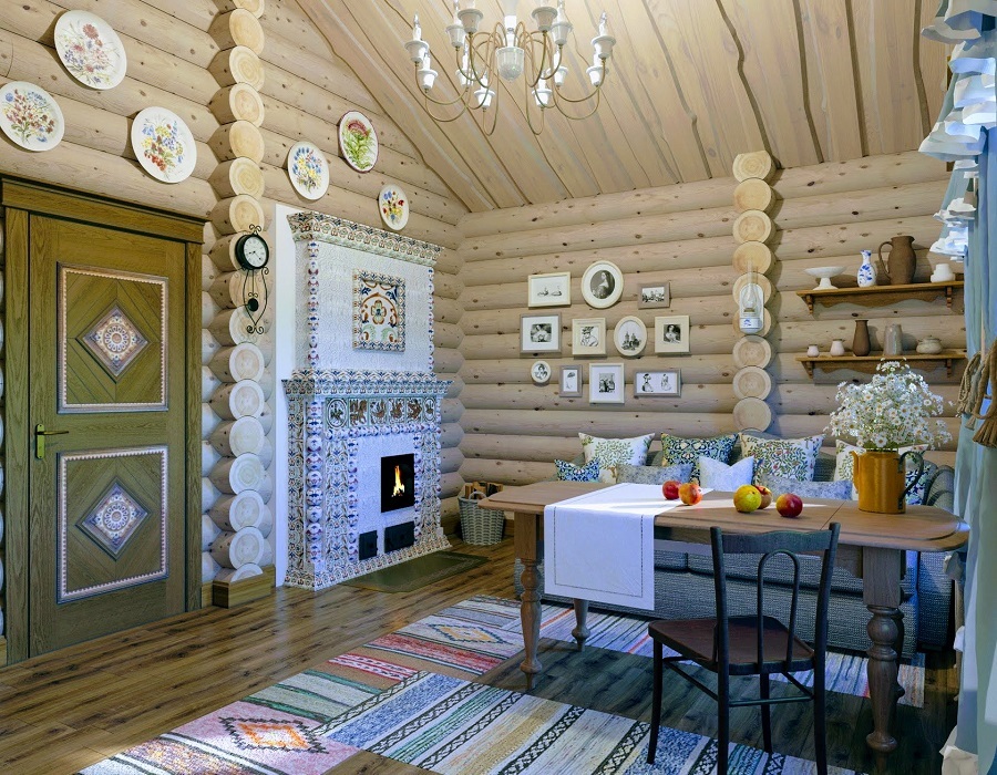 Интерьер внутри бани комната отдыха