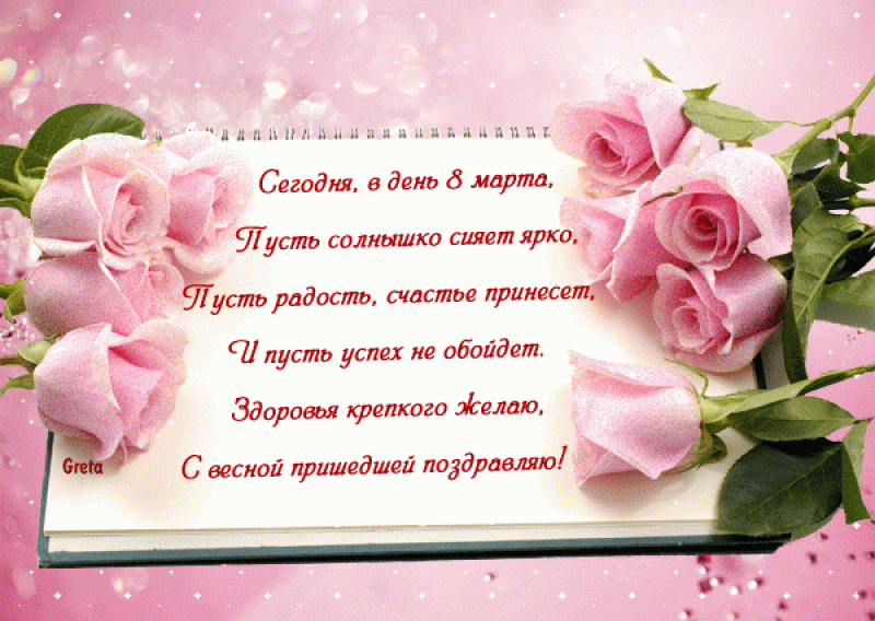 8 марта картинки Пусть в каждом доме будут: счастье, Любовь, достаток и уют . Пусть все невзгоды и ненастья Друзей и близких обойдут . Пусть не затронет Вас беда, Не обольет слезами горе, Чтоб Вы не знали никогда Болезней, недругов и боли . Не будет пусть у Вас в судьбе Потерь навек, разлук надолго . Пусть дорогой Вам человек