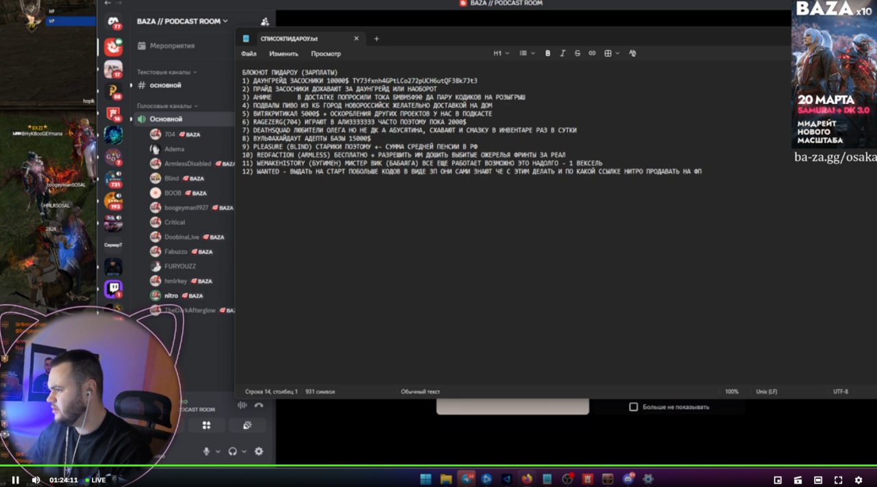 База это такой вообще проект, который возник из ниоткуда, с какими-то инкогнито, и вроде показывали стиль, но не могли придать себе форму. И вот эту форму им помог придать Маргавер, который зарядил их, так сказать, вот этим ласт-самурайским вайбиком при поддержке Фурика и его команды. И в целом всё это медиаразвитие и вот эти подкасты заходят прям хорошо.🫡