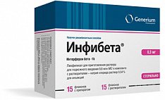 Интерферон бета- 1b : Интерферон бета- 1b (Interferon beta- 1b ) Интерферон бета- 1b человеческий рекомбинантный (рчИФН-бета) Инфибета: Лиофилизат для р - ра для п / кожн . введ .9,6 млн . МЕ флаконы 15 шт ., упак . 27772 .00
