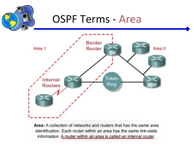 Internal Routers are routers whose interfaces all belong to the same area . These routers have a single Link State Database . A router that speaks OSPF will assign one or more interfaces to an ospf process . Each interface included in OSPF (whether adjacent to another OSPF speaker or not) must be assigned to an area .