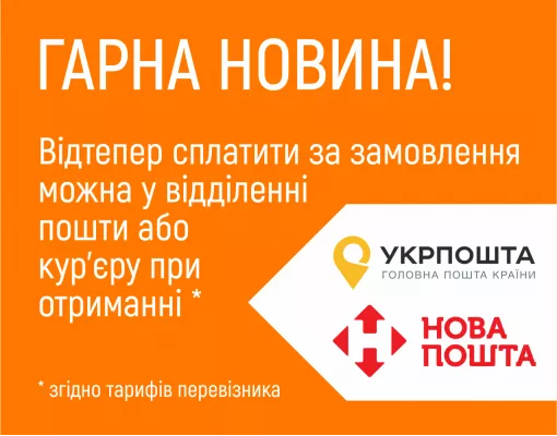 Доставка в отделение «Новая почта» - 59грнДоставка курьером «Новая почта» - 79грнБесплатная* доставка заказов на сумму от 500 грн!