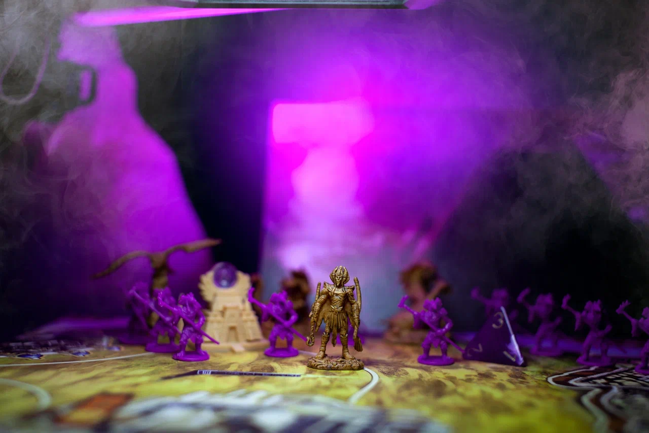 Если верить психологам, то нам кажется, что мы всё придумываем. На самом деле это ложное чувство и сам процесс - это просто крафт нескольких ранее загруженных в мозг данных: идей, картинок или чего угодно, даже запаха. Поэтому тут всё просто - иногда я просто вижу крутое фото и хочу снять также что-то другое. Иногда есть желание сделать какую-то картинку, с которой у тебя ассоциируется игра и ты ищешь возможность. Например, так было с челленджем #theiwarichallenge от @tabletopjables я так загорелся идеей, что таскал с собой компоненты от игры везде. Однажды катался на велосипеде и разглядывал окрестности, нашел какую-то мини-канаву возле дорожки с классной решеткой, бросил велосипед и побежал пока не стемнело, потому что солнце уже садилось и сделал вот такой сочный кадр.