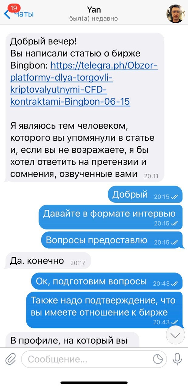Crypto SpectreПосле обзора на биржу Bingbon, на связь вышел официальный представитель и сказал, что может дать контраргументы в защиту биржи. Я предложил интервью. Что из этого получилось читайте ниже.