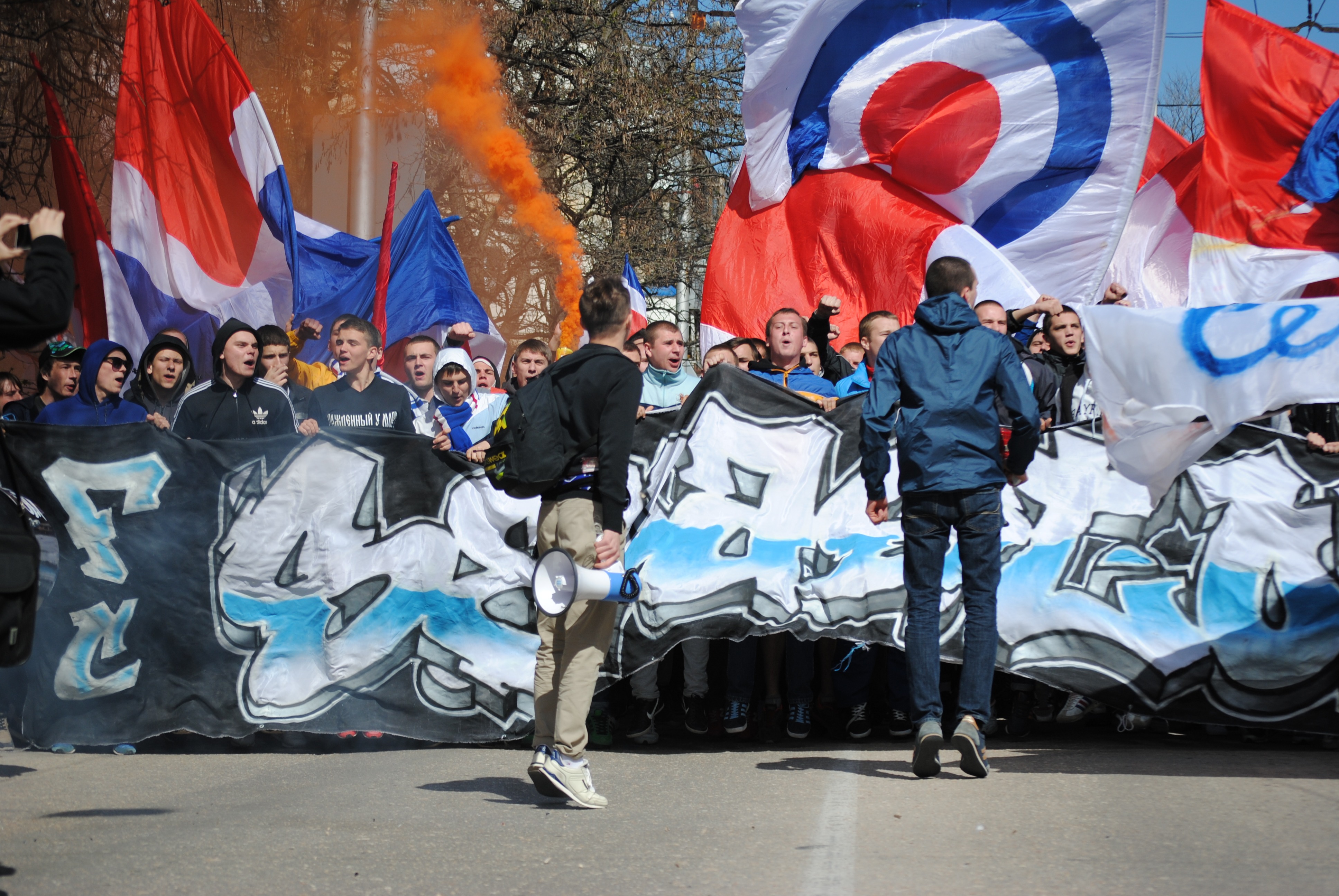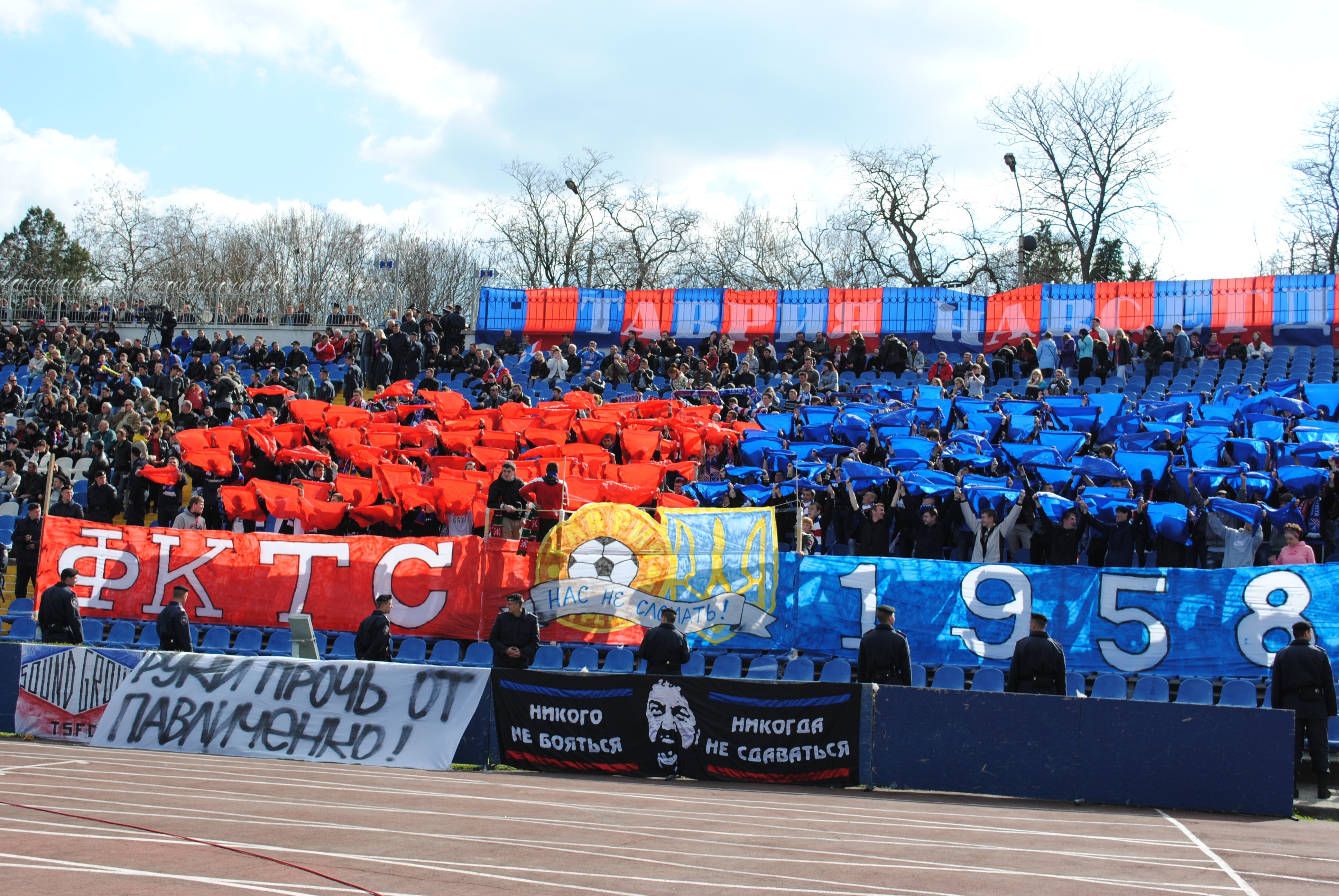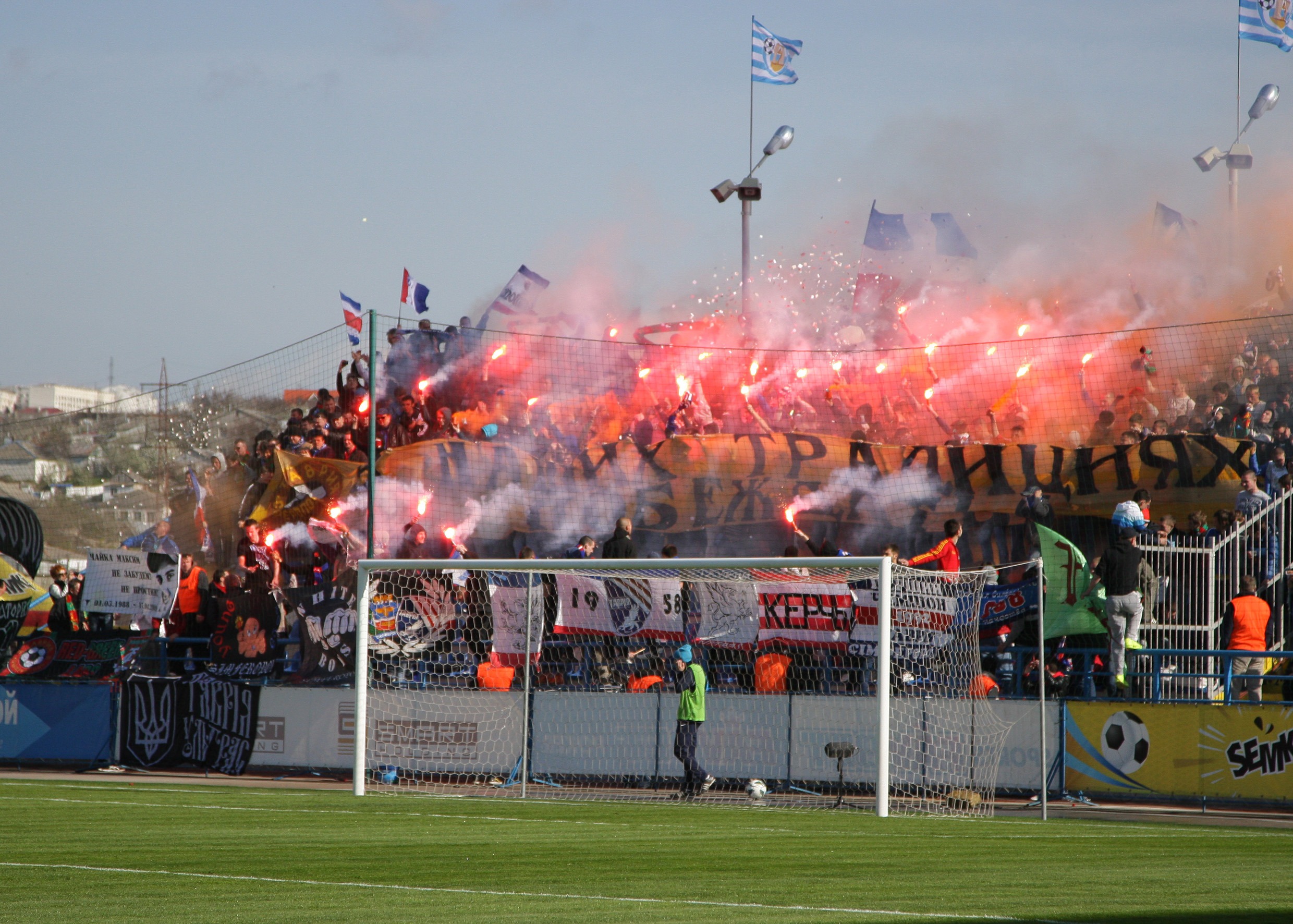 - Б. С детства болел за симферопольскую “Таврию” с братом, помню первую нашу игру - это “Таврия” – “Кривбасс” (2-4), сезон 1999-00. На сектор попал из праздного интереса к движухе, которая там происходила. Кроме того был на играх других симферопольских команд, саппорт и околосаппорт которых организовывал в том числе мой коллега по интервью (например “Динамо” Симферополь).