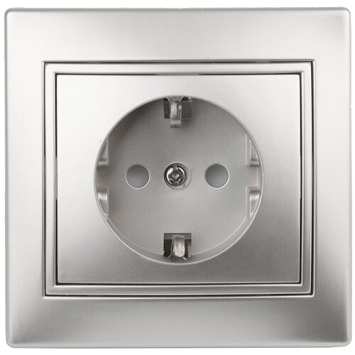 -Prise avec rideaux, série Intro Plano, installation cachée, couleur aluminium 1-206-03. Valeurs nominales 16A 250V. La prise est en céramique, équipée d'un cadre unique et équipée de bornes à vis. Les bornes à deux trous vous permettent de connecter des prises adjacentes avec un câble. L'installation dans le boîtier de prise s'effectue à la fois sur des pattes de montage et sur des vis.