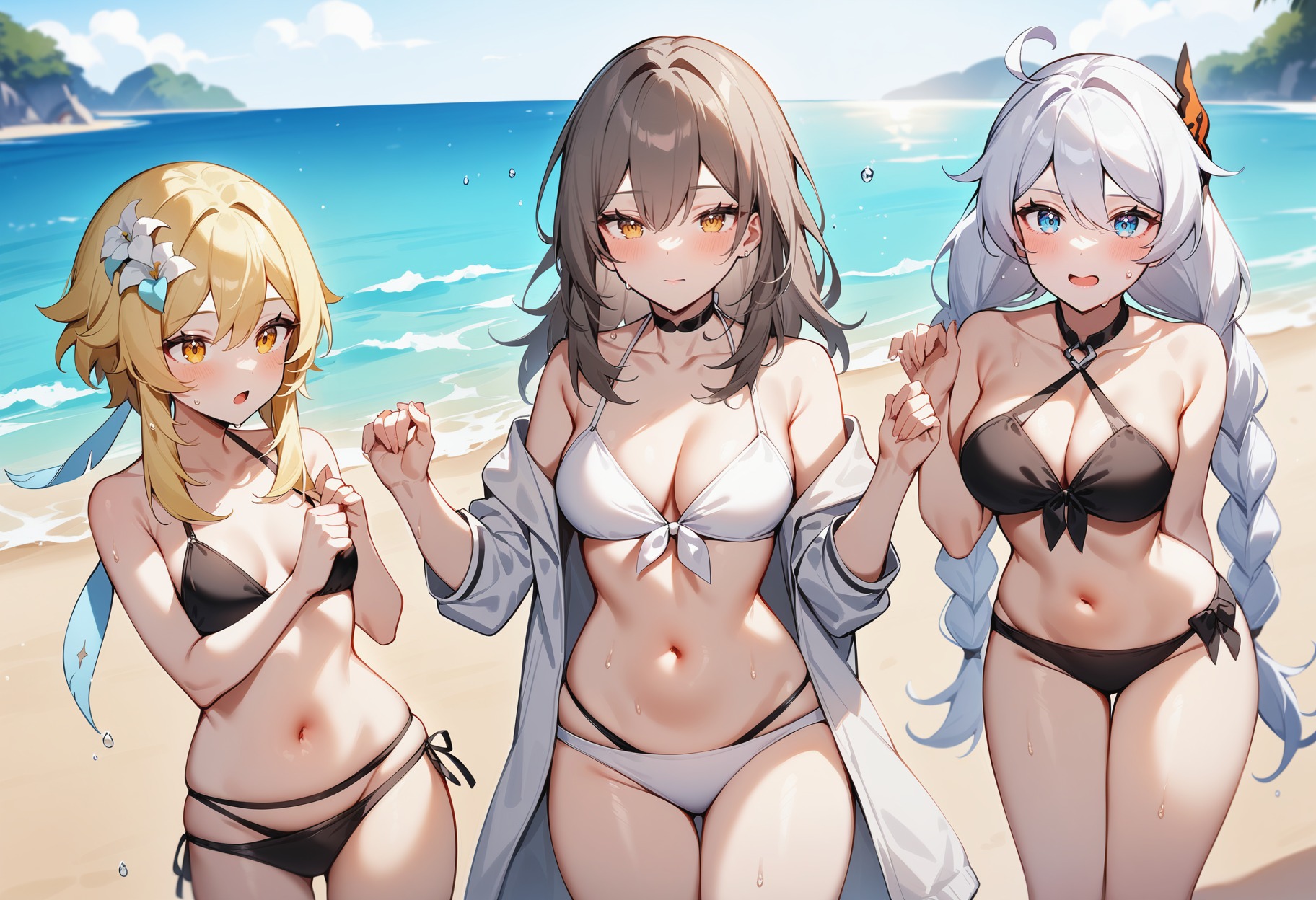 1girl, kiana kaslana, honkai impact 3rd, twin braids, blue eyes, white hair