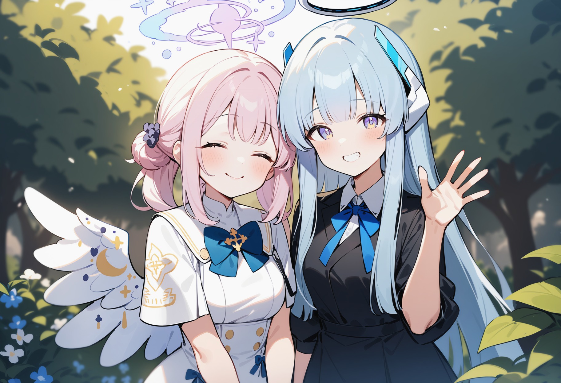 1girl, noa, blue archive, grin, waving, halo