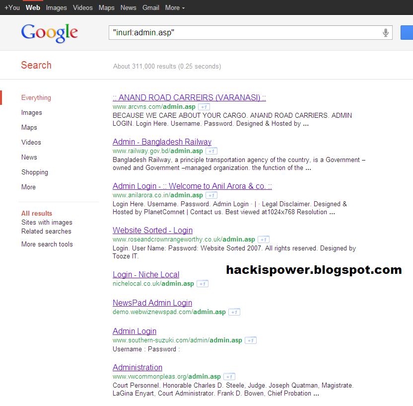Hack website with inurl adminlogin.asp string.