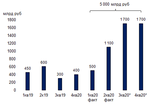Это означает привлечение порядка 1,7 млрд в квартал, что фактически больше на 1 млрд чем в нормальной (до коронаризисной) ситуации. Такой высокий объём размещений будет давить на цены ОФЗ и может замедлить снижение доходности бумаг к целевым значениям. Вышковский не успокоил, а только припугнул участников рынка, фактически сказав: «Разместим столько, сколько будет нужно - верхняя граница очень высокая».