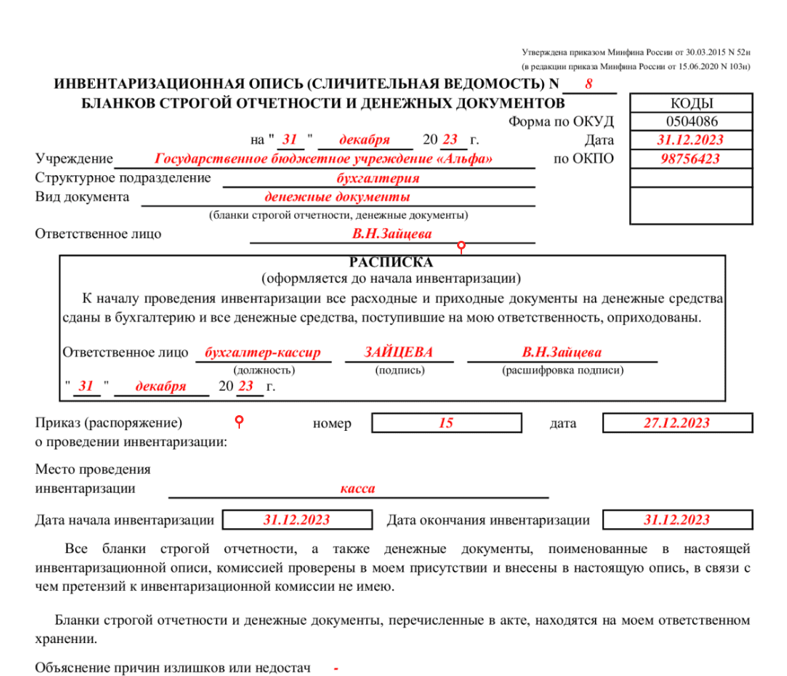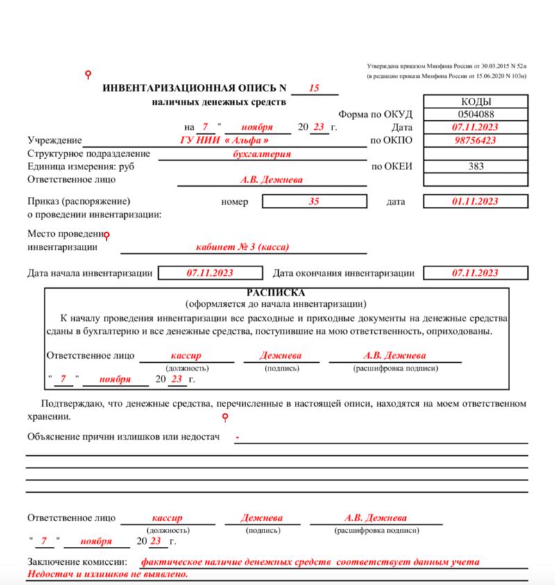 Инвентаризация кассы оформление
