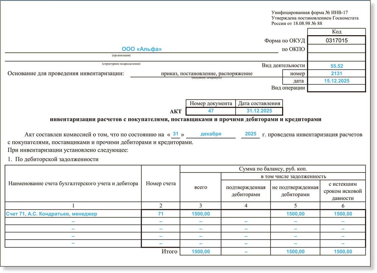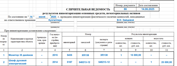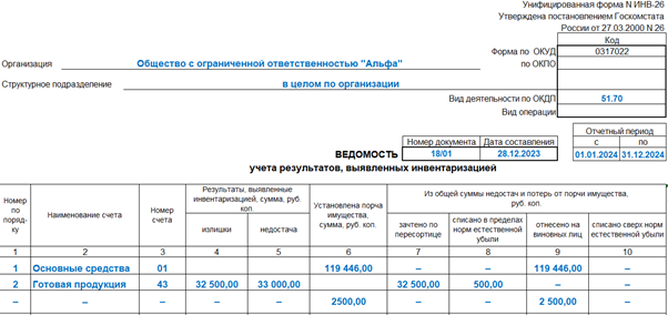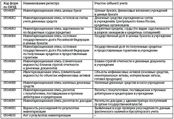 Инвентаризация учетные регистры