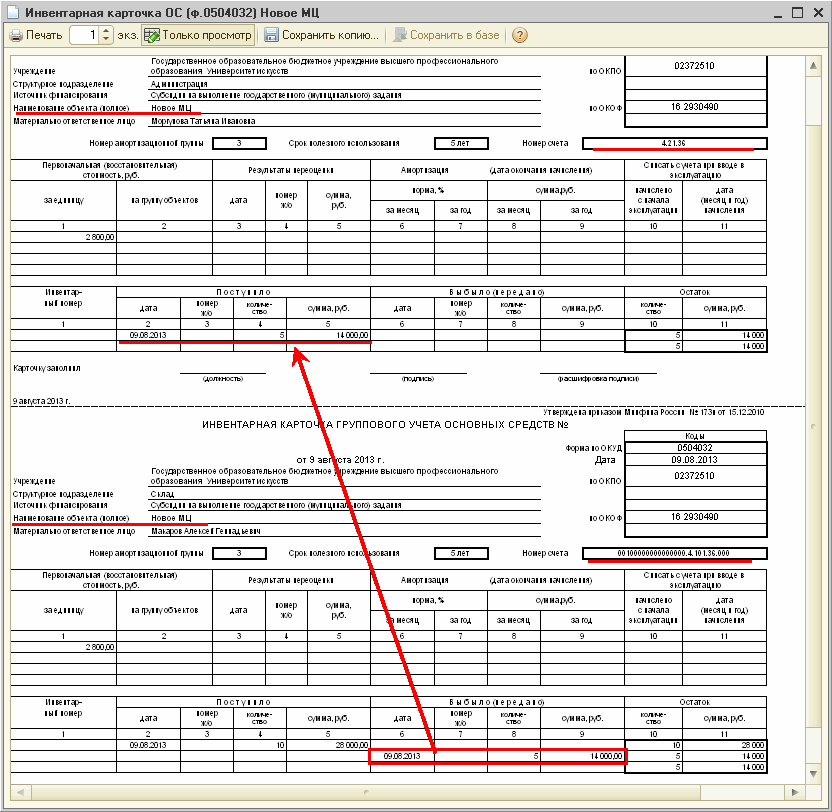 Инвентарные карточки бюджетный учет