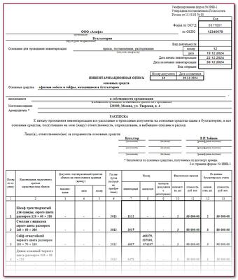 Инвентарный список основных средств 109 фотографий