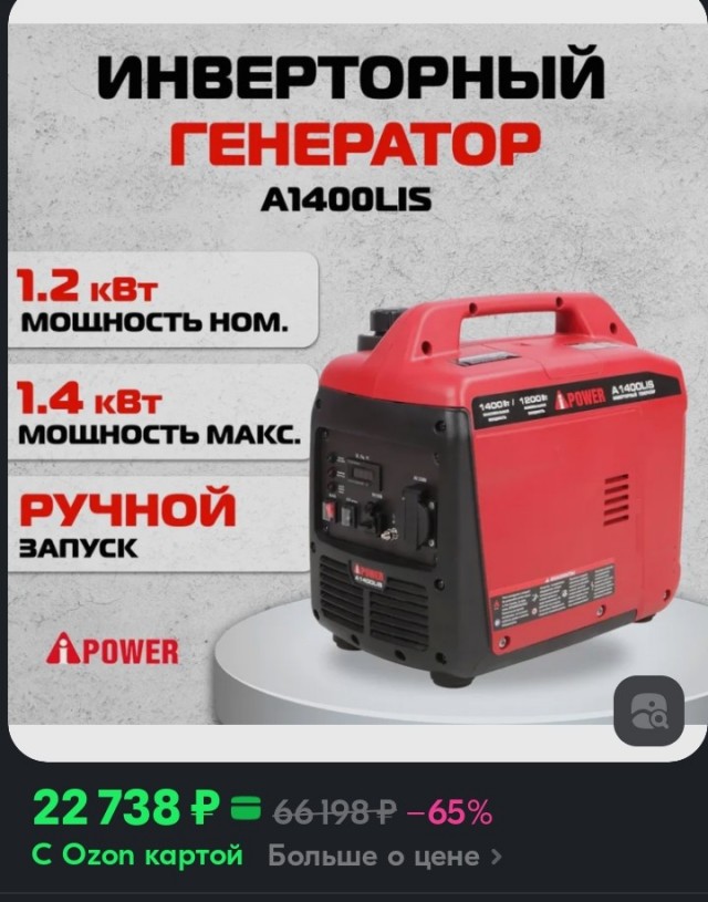 Инверторный генератор a ipower a1400lis 105 фото