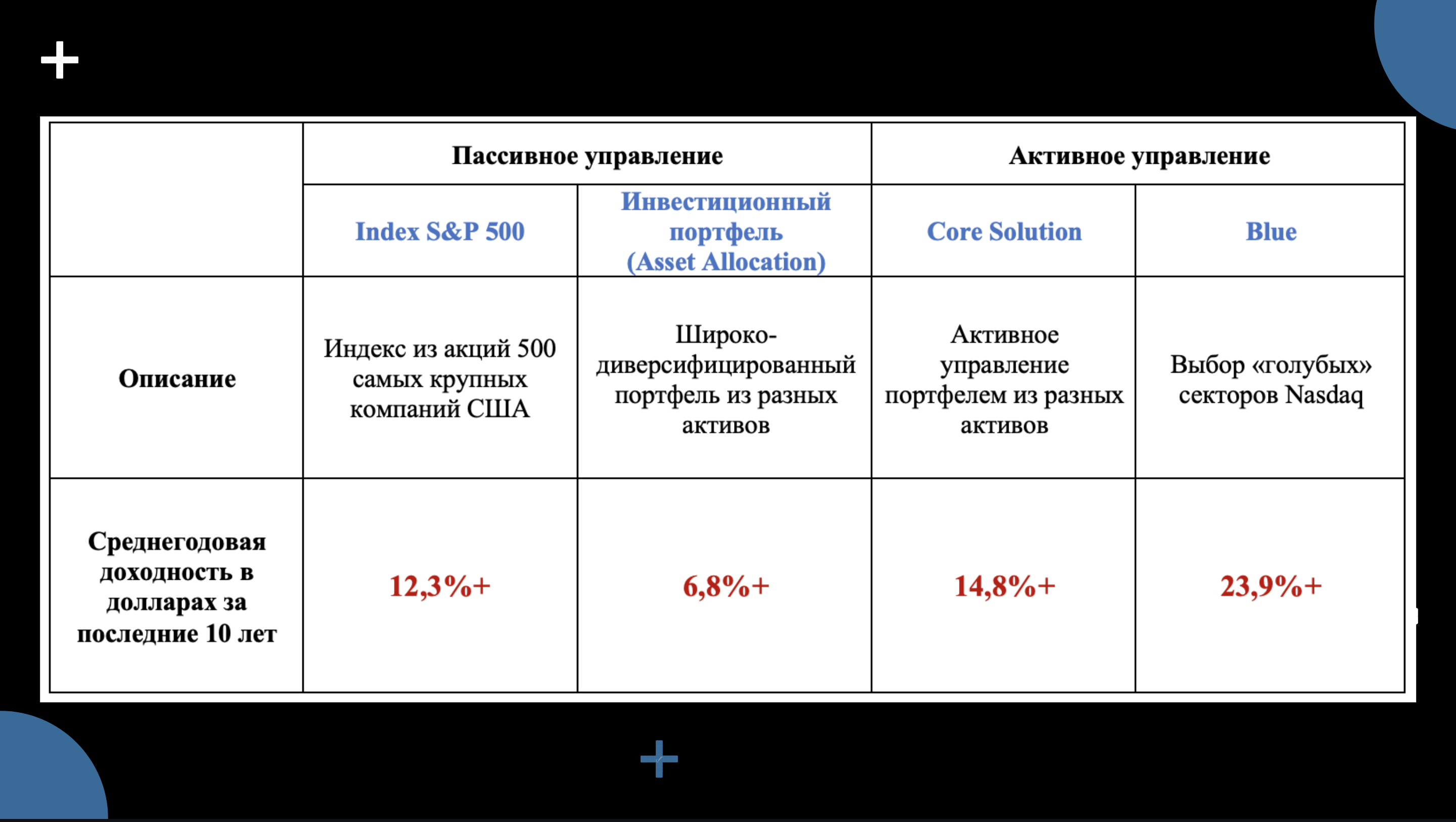 Данные по доходности всех стратегий за последние 10 лет к 1 января 2023 г. следующие: