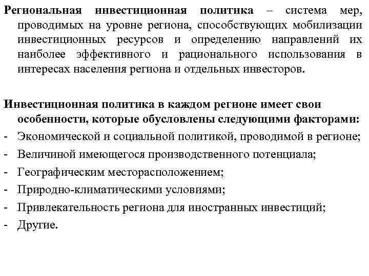Инвестиционные стратегии региона