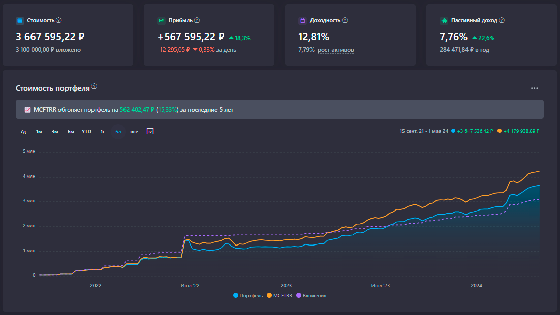 Статистика портфеля FIRE «Апрель 2024»
