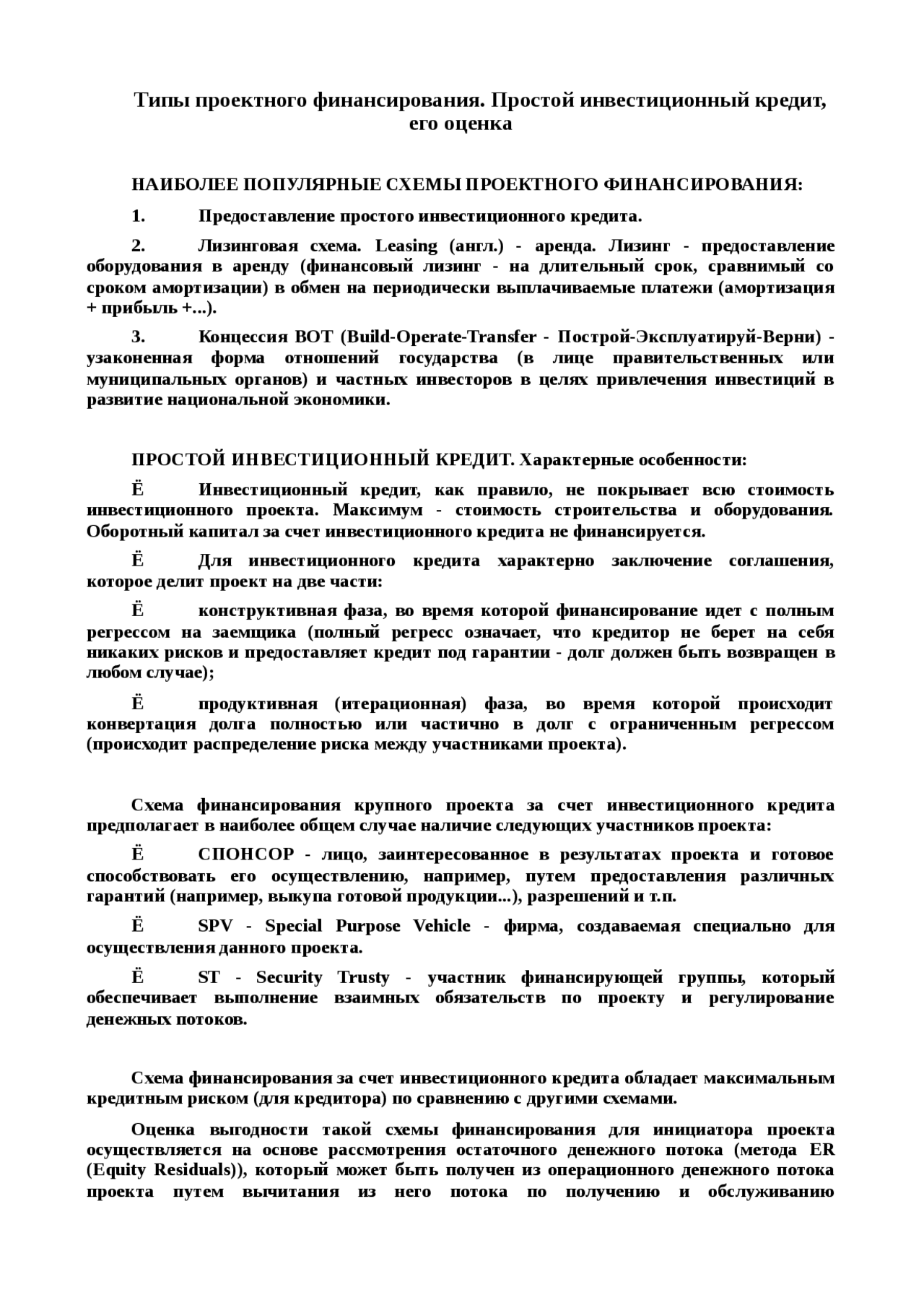 Инвестиционный займ образец