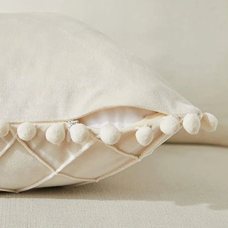 «Inyahome Velvet Waist Throw Pillow with Pompom Solid Color Decorative Cushio Pillow Pink Grey Green Solid Velvet Home Pillowcase» по лучшей цене на рынке! Всего за 9$ (855рублей)