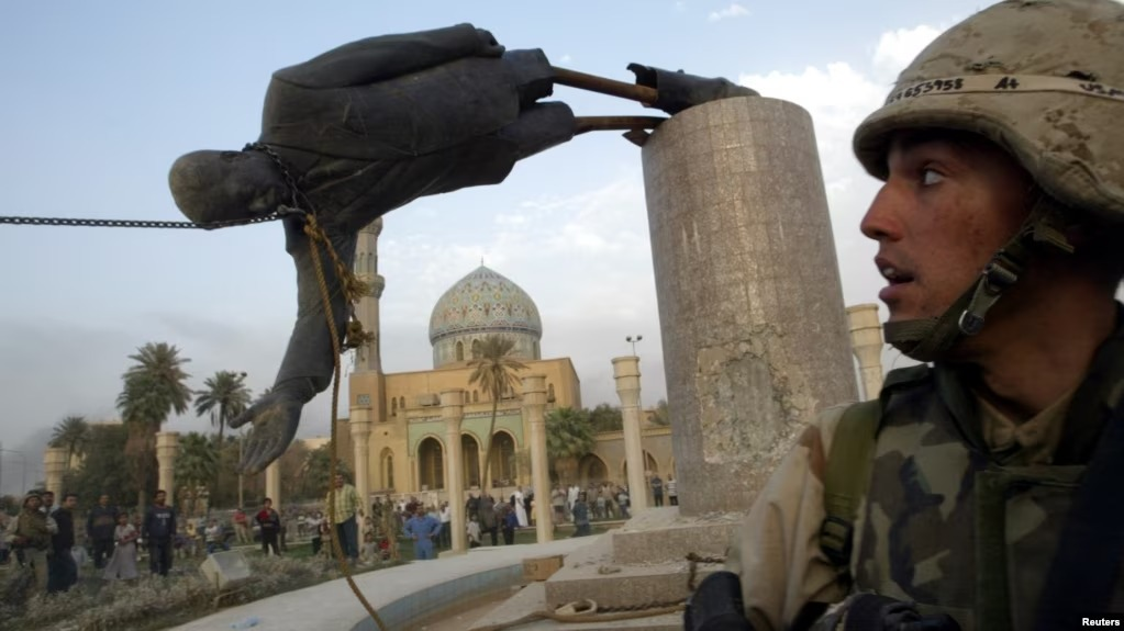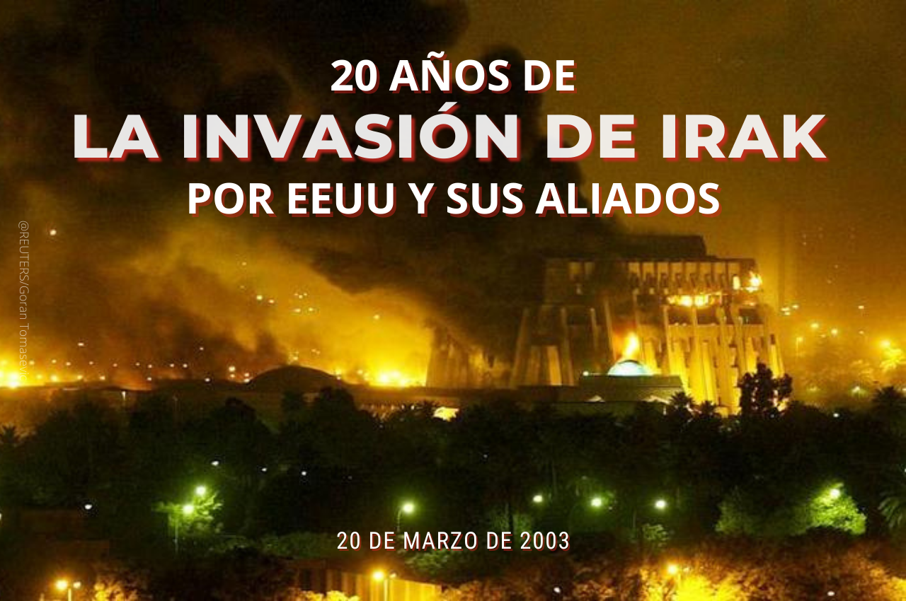 🗓 El 20 de marzo de 2003, en violación del Derecho Internacional, EEUU apoyado por sus aliados comenzaron la invasión en Iraq.
