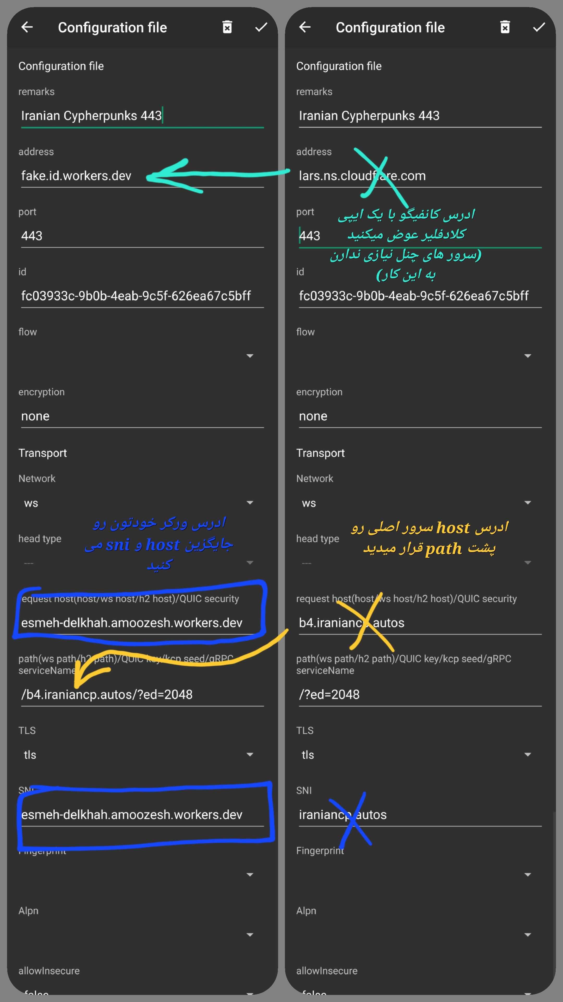 (البته توی پرانتز بگم شما تمام کانفیگ های تروجان و ویمس و ویلس رو از هرجا باشه می تونید بندازید پشت ورکر و فقط باید ws+tls باشن، همین)