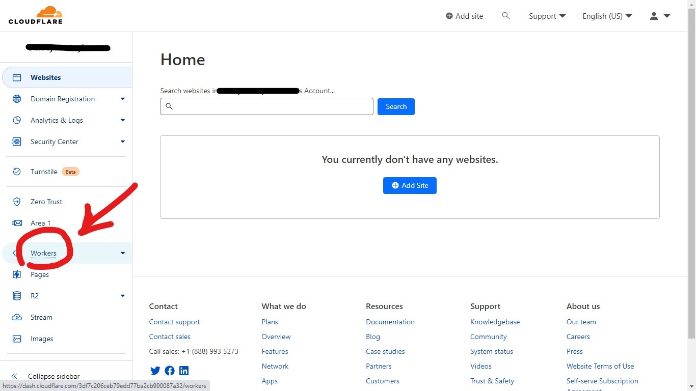 توی صفحه اصلی کلادفلیر بعد از ورود با اکانتی که ساختید. روی workers میزنید