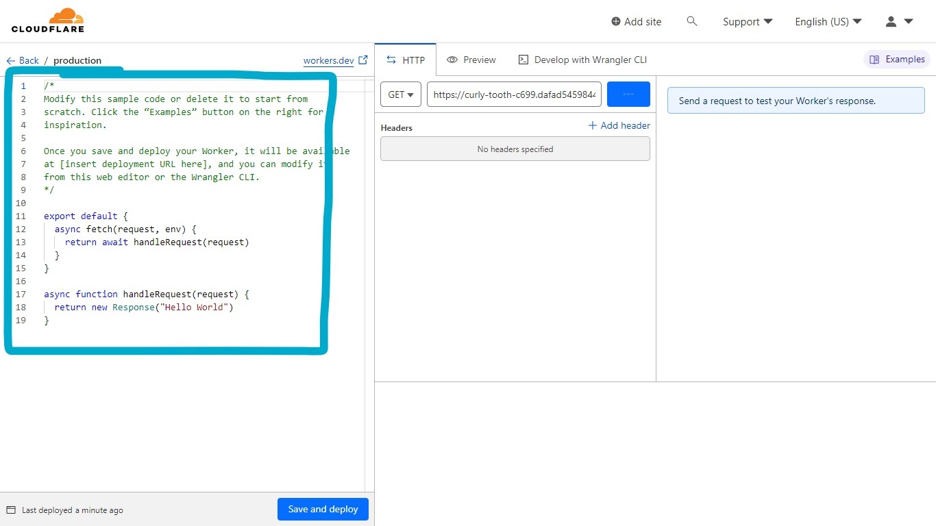 حالا اینجا اگر بار اولتون باشه که ازتون اسم نمیخواد و مستقیم میسازه و وارد صفحه کد میشه ولی اگه قبلا وارد ورکر شده باشید ، توی صفحه بعدی ازتون میخواد یه اسم دلخواه انتخاب کنید (خودش از قبل کادرو با چرتو پرت پرکرده، می تونید پاک کنید و یه اسم دلخواه بزنید که کوتاه تر باشه)👇