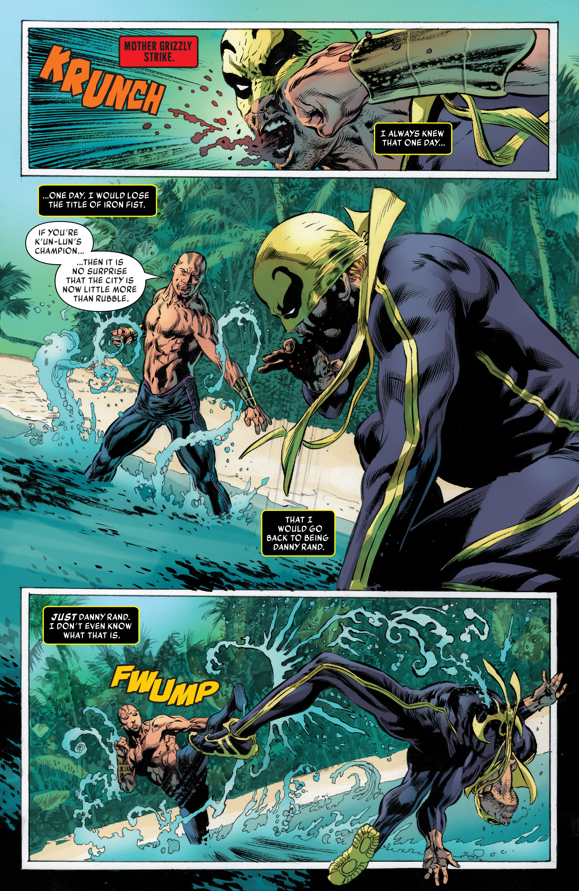 Years earlier, Danny earned the right to gain the Iron Fist after being named the winner of a duel against Davos in K'un-Lun by Davos's father Lei Kung , though Davos had not conceded defeat to Danny. Now, fighting between the Golden Tigers and the Hatchets escalates and Danny is unable to convince Hai-Qing Yang, the leader of the Hatchets, to look for a peaceful resolution to the conflict. On the streets, Danny meets a strange newcomer to the city, Mary , and helps her by giving her directions and trying to protect her from the gang violence. She develops feelings for Danny in response to his kindness. Joy and Davos use blackmail to acquire an antique bowl from Mika Prada, an old acquaintance of Joy's. Colleen convinces Hai-Qing's wife Sherry to talk her husband into peace. Davos later meets with Hai-Qing regarding shipments that he has coming into the Hatchet's docks, and when he learns that the group can no longer secure his items given they now plan to share the docks with the Golden Tigers Davos gives Hai-Qing a stroke.