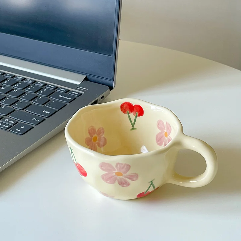 ZNoMsrrBZHere you can buy Irregular Flower Breakfast Mug Hand Pinched Ceramic Mug Ins Korean Style Milk Tea Coffee Cup Simple Home Handheld Type Milk Mug with free delivery to your post office.