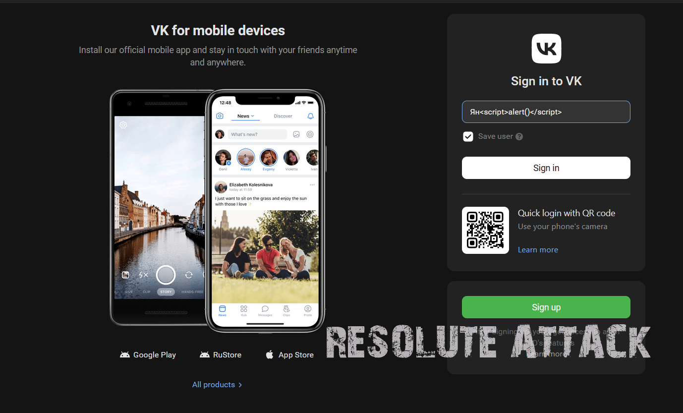 Обычная страница Вконтакте. О чем подумает человек который хочет найти XSS? Во первых он обратит внимание что есть поле, можно ввести телефон или эмайл, попробуем ввести туда честные данные и пейлоад для XSS