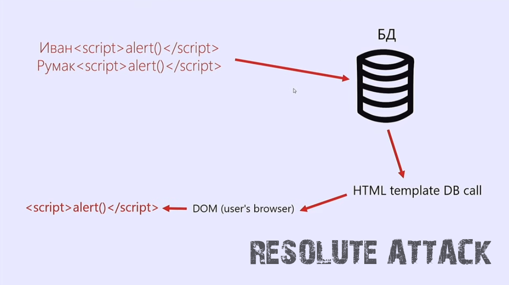 - Во первых она возникает при генерации html-страницы когда разработчику нужно показать какие-то данные на странице, какие-то пользовательские данные засунуть в html-страницу, например пользователь ввел свое имя и разработчику нужно отобразить это на странице браузера, и в случае когда разработчик что-то записывает от пользователя в базу данных и затем тянет это в шаблон, называют - Stored XSS