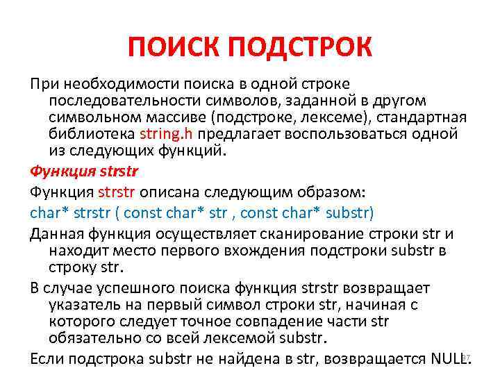 Ищет подстроку в строке
