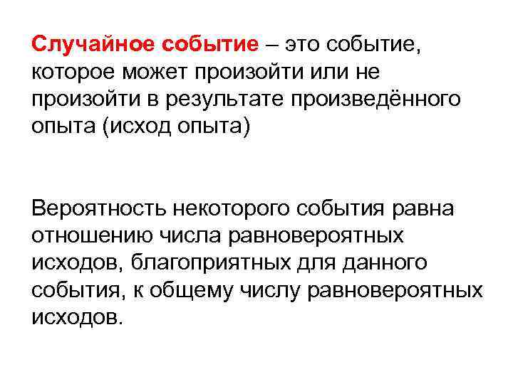 Исход эксперимента это