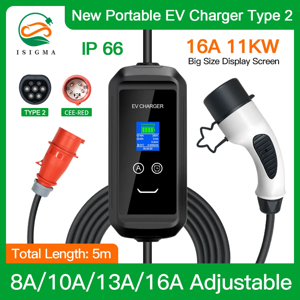 HXGcTTyHLhHere you can buy Isigma Enhanced Version Type 2 16A 11KW IEC 62196 Portable Charger CEE Red Plug Current Adjustable CE For Electric Car 3 phase with free delivery to your post office.