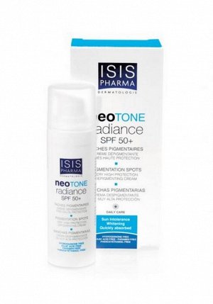 ИСИС ФАРМА НЕОТОН / ISIS PHARMA NEOTON Радианс избелващ крем с SPF 50 описание: Isis Pharma Neotone Radiance Whitening Face Cream SPF 50+ представлява избелващ дневен крем за лице, който намалява хиперпигментацията, като в същото време защитава Вашата кожа от вредните въздействия на UV лъчите .