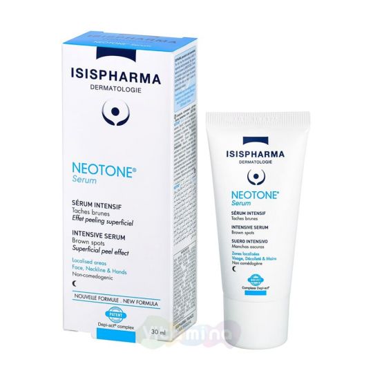ИСИС ФАРМА Неотон / ISIS PHARMA NEOTONE депигментиращ серум състав: 6% гликолова киселина, 4% лумискин, 2% аскорбинова киселина, 2% алфа-арбутин, 0,1% екстракт от женско биле, 0,1% салицилова киселина . ИСИС ФАРМА Неотон депигментиращ серум 25 мл се предлага в Apteka .puls .bg на цена от 40,80 лв .